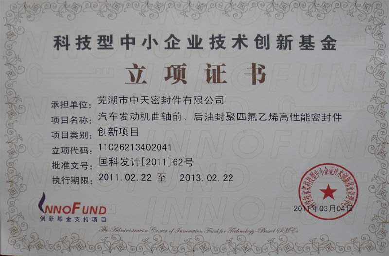 科技型中小企業(yè)技術(shù)創(chuàng)新基金立項(xiàng)證書(shū)