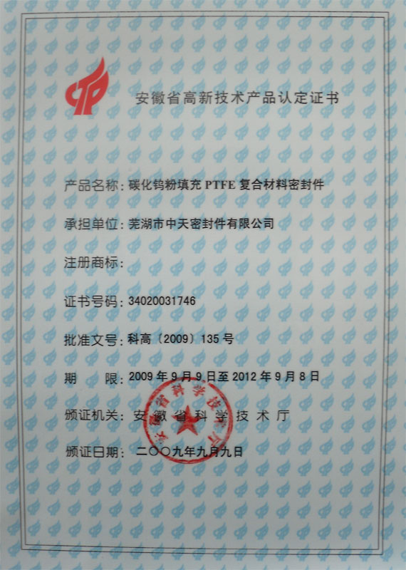 : 安徽省高新技術(shù)產(chǎn)品認(rèn)定證書