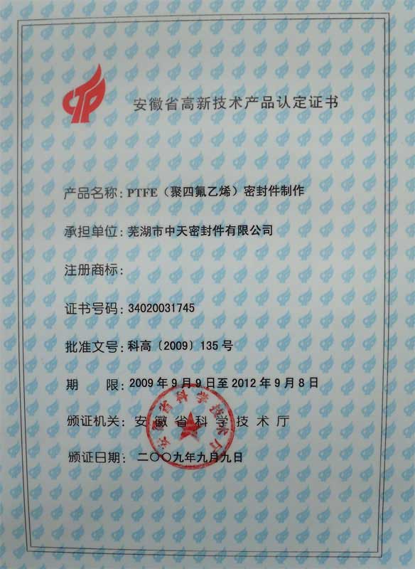 : 安徽省高新技術(shù)產(chǎn)品認(rèn)定證書